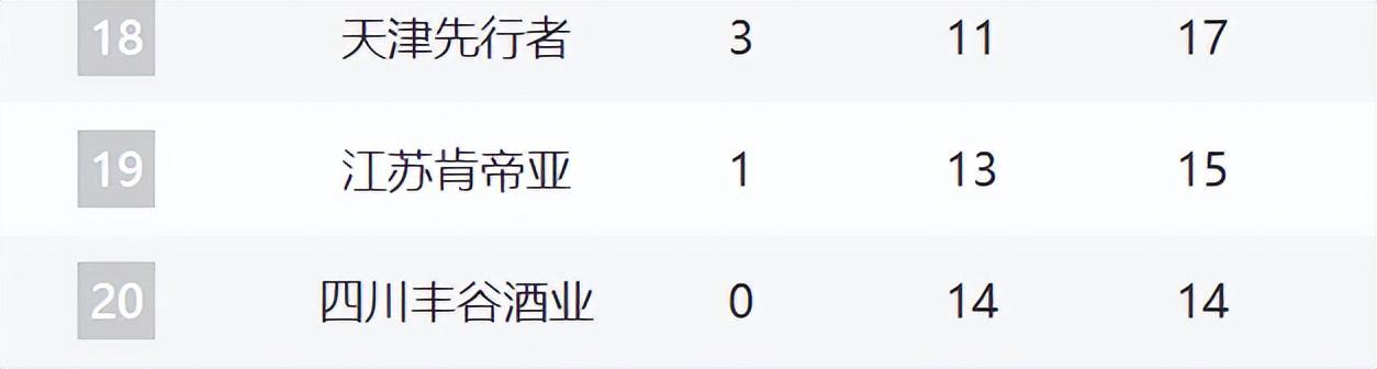 18-20分别是天津、江苏和四川。天津最近10场拿下了三场,他们正在摆脱困境。